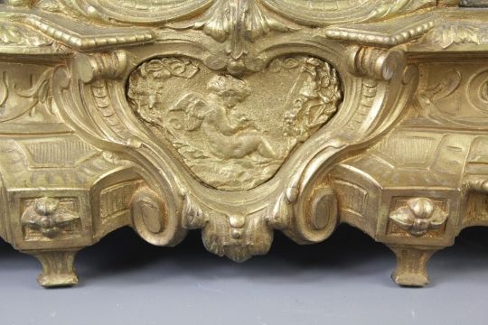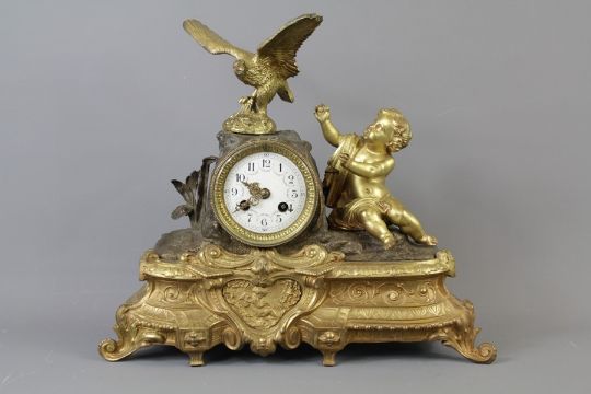 Late 19th Century French Gilt/Bronze Mantle Clock, movement stamped A.D Mougin, approx 37 x 32 x 11 cms.