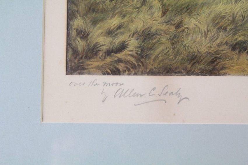 After Allen C. Sealey (1850 - 1927) A Pair of Hunting Prints. The first depicting "Another Day", approx 44 x 28 cms, signed lower left, the second "Over the Moon" approx 44 x 28 cms. signed lower left, both glazed and framed.