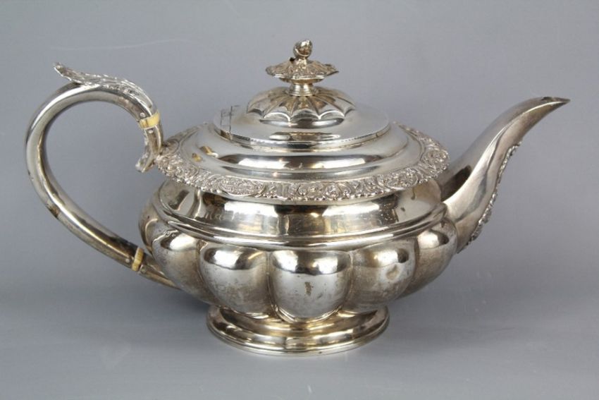 A Georgian Silver Teapot. London hallmark, dated 1810, mm rubbed approx 750 gms