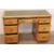 An Antique Writing Desk. The desk with green leather tooled top, three drawers either side and a single central drawer, approx 122 cms l x 76h x 50 w cms.