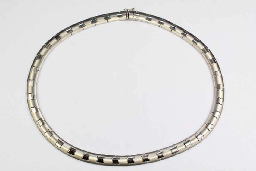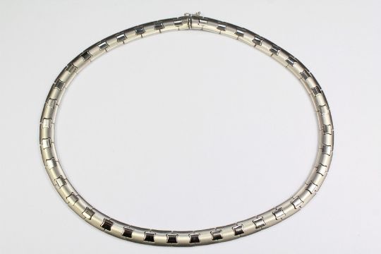 An 18ct White Gold Satin and Polished Finish Collar Necklace, approx 42 cms, approx 43.5 gms.