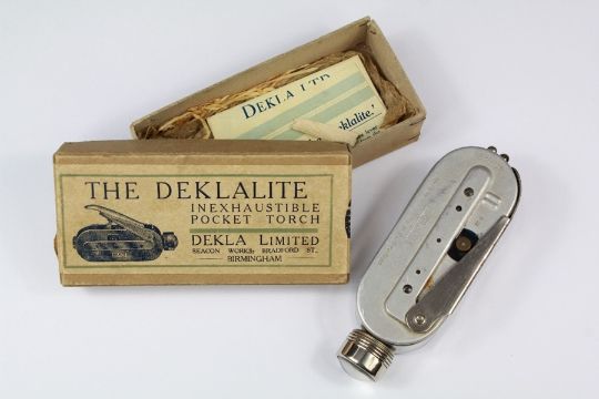 An RAF Circa 1950's Deklalite Inexhaustible Pocket Torch. The torch contained within the original box.