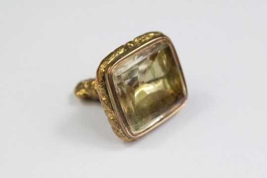 Antique Yellow Metal Lion Mask Citrine Fob Seal. This lot includes a Victorian Glass Double Length Necklace. The glass beads approx 10 mm, approx 150 cms l. (2)
