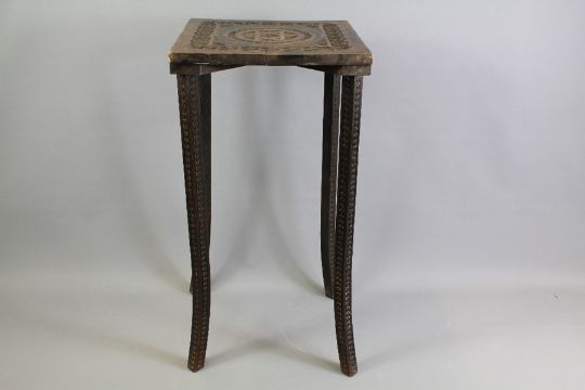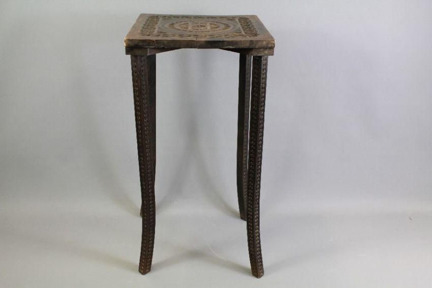 A West African Occasional Table. The table top carved with central star design, tapered legs, approx 33 x 33 x 66 cms.