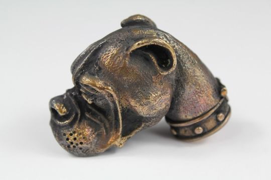 A Brass Cased Vesta Case. The vesta case in the form of a boxer dog, approx 50 x 45 mm.