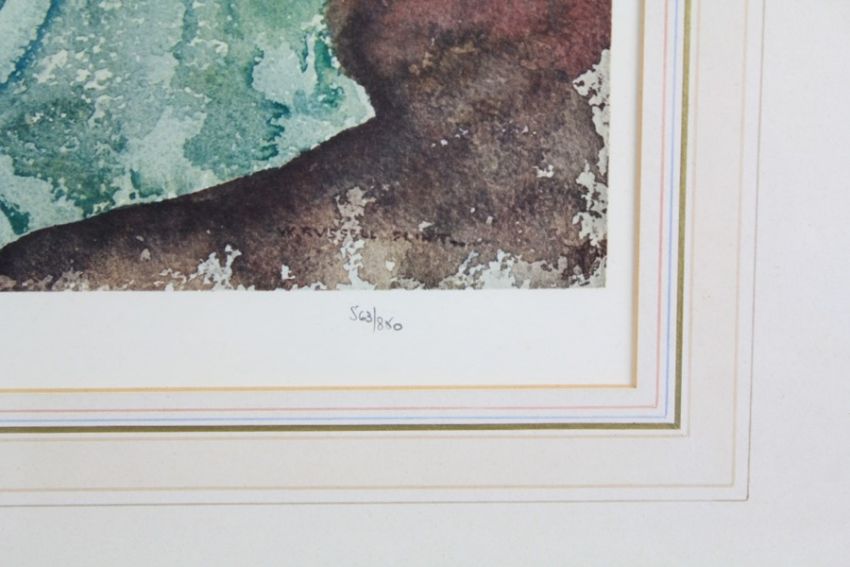 William Russel Flint Limited Edition Print. The print depicting a reclining brunette, numbered 563/850, approx 58 x 42 cms, framed and glazed, with publishers blind stamp lower left.