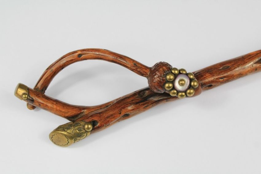 A Lady's Victorian Sword Cane. The cane handle carved with an acorn set with a pink stone, approx 89 cms.