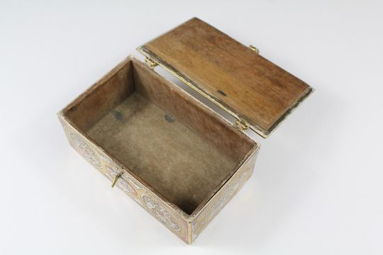 An Islamic Cairo Ware Box. The box with decorative inlay in silver and copper, approx 12 x 8 x 5 cms.