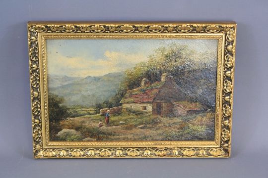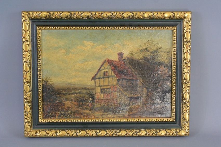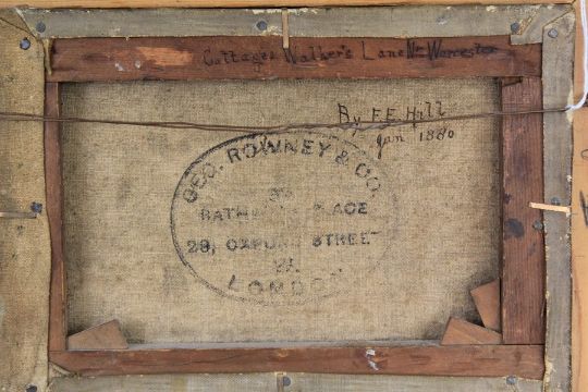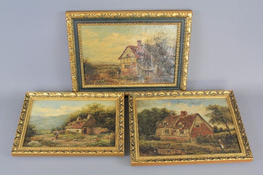 F.E Hill (Exb.1899) Oils on Canvas. Three Charming Victorian Oils on Board, entitled 'Cottages Walkers Lane Worcester' inscription to verso January 1880,approx 24 x 17 cms the companion painting entitled 'Cottages nr Worcester', approx 25 x 18 cms dated 1882 and a third inscribed to verso 'Cottage North Wales' signed and dated 1881 approx 22 x 14 cms.Note: Born in Worcester, England F.E Hill appears to be in the same artistic circle as James Callowhill, possibly as a contemporary or as a student.