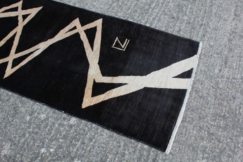 Luisa Zanibelli Italy - A Bespoke Contemporary Black and Nude Dyed Wool Runner. The runner originally purchased in Rome, from the Gallery Danon Exhibition titiled 'The Tiger and The Flower of Lotus', approx 740 cms x 97 cms. The designer is well-known and has participated in major group exhibitions, including in 1986 and 1999 the XI Quadrennial and the XIII Quadrennial in Rome he lives and works in Rome.