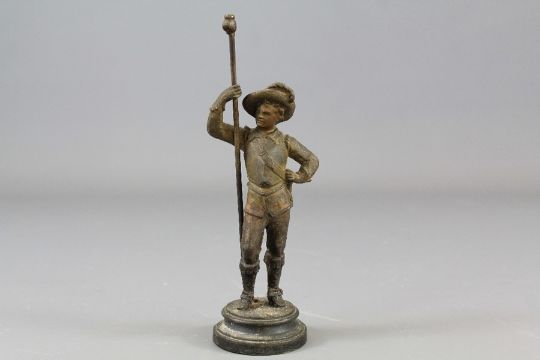 A Miniature Bronze Royalist Figure. The figure holding a staff, approx 12.5 cms h.