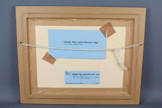 Alan King Oil on Canvas Panel. The painting depicting Mercedes Benz W125 "The Most Powerful Grand Prix Car Ever Built", signed lower right, approx 29.5 x 39.5 cms, silver mount in a black frame.