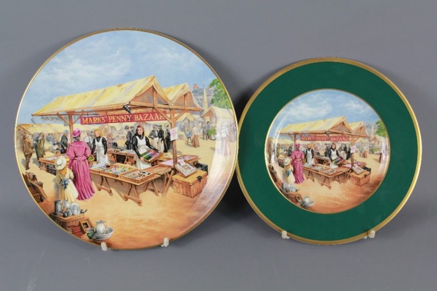 Two Limited Edition Royal Worcester Marks and Spencer's Centenary Year 'Penny Bazaar' Commemorative Plates. To celebrate 100 years of service to the British public, plate nr. 279/2700, approx 24 cms d and the other 2,799 /4250.