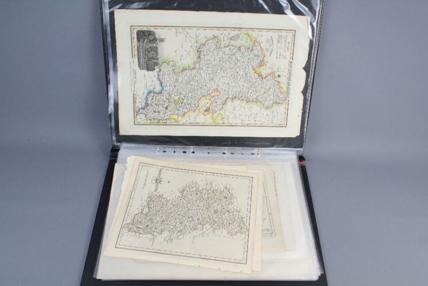 A Folio of Antique 18th and 19th Century Maps. This lot includes the maps of counties of Hertfordshire, Bedfordshire, Buckinghamshire by Pigot, Fisher, Neele, Murray, Virtue, Becker, MacKenzie, Lewis, Dawson etc and the town plan of St Albans view dated 1822 publ. Nichols & Sons 1823. (43)