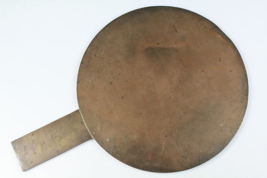 Antique Japanese Bronze Mirror. The mirror depicting a butterfly with character marks, approx 35 cms.
