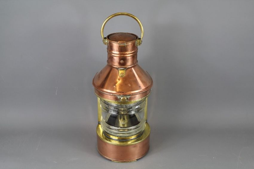 Antique Copper and Brass Ship's Lantern, approx 35 cms (good condition).