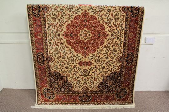 A 20th Century Keshan Carpet. The carpet having beige ground. approx 2.30 x 1.60 m, in good condition with complete selvedges and tassels.