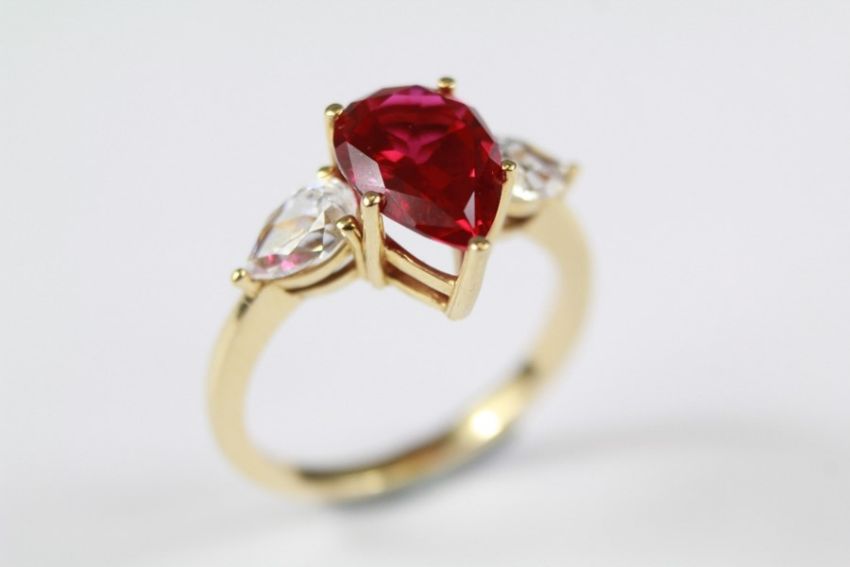 A 14ct Yellow Gold Synthetic Ruby and CZ Ring, approx 3 gms, size L.