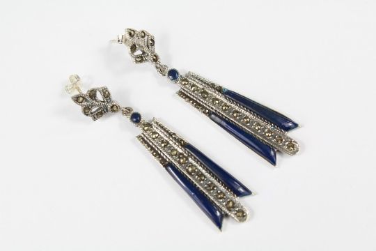 Silver and Enamel Art Deco Style Earrings, approx 10.5 gms.