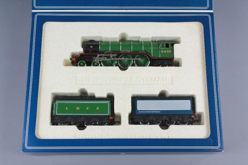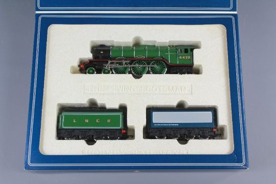 Hornby Railway The Flying Scotsman Limited Edition Presentation Set. The set contains one locomotive, BR blue/grey water tender and one LNER tender. (3)