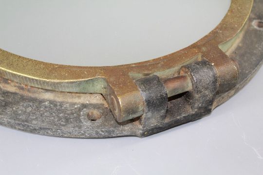 An Original Brass Ship's Portal (now mirrored) for decorative purposes, approx 58 cms d.