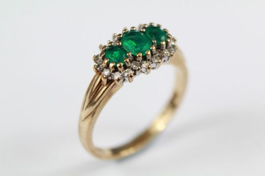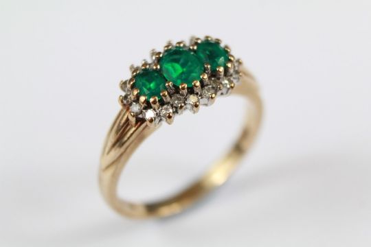A 9ct Gold Diamond and Green Stone Ring, size O, approx 3.7 gms.