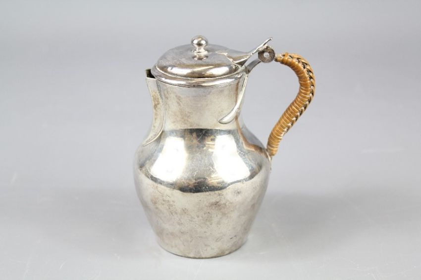 A Continental Silver Cream Jug. The jug having a straw-covered handle.