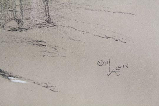 Cecil Aldin - Signed Print entitled George Inn at Norton St. Philip Somerset. Signed in pencil to the margin with dedication to S.B. Russell, approx 40 x 38 cms.Note: This print originally belonged to the Gordon Russell Family Broadway.