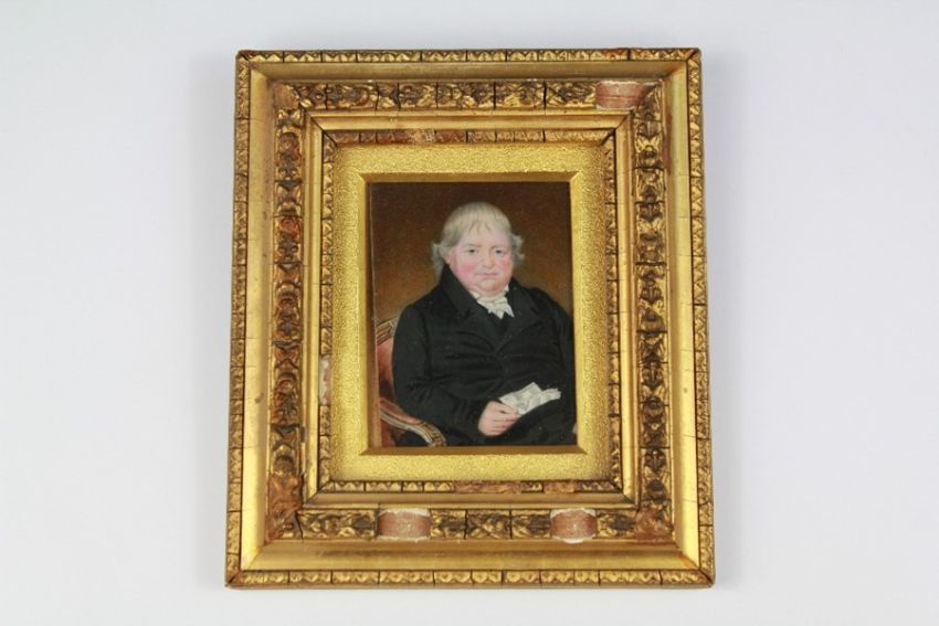 A 19th Century Portrait Miniature of a Gentleman. The portrait on ivory depicting a portly gentleman, approx 7 x 9 cms.