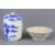 Antique Chinese Studio Pottery Blue and White Bowl. The bowl having foliate decoration to side, character marks to outer rim lip, approx 20 cms dia x 7 cms deep together with a 20th century Chinese blue and white jar and cover, the jar painted with a rural scene, approx 20 x 13 cms. (af)