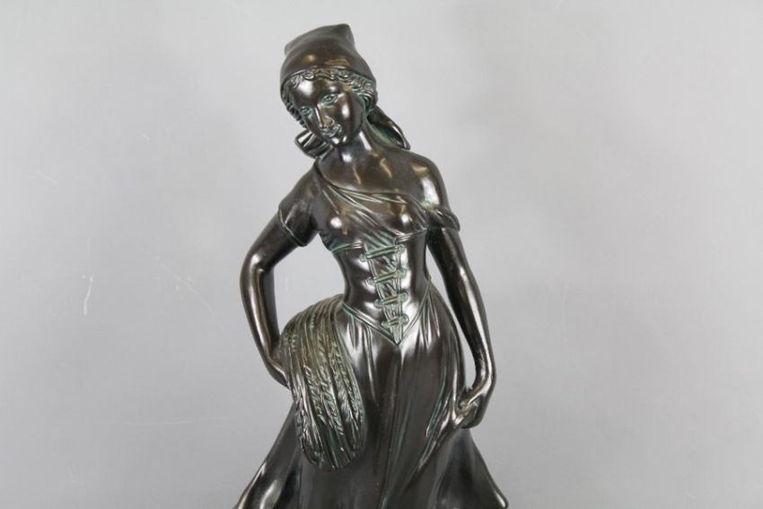 A Composite Figurine of a Girl. The country girl depicted clasping a wheat sheaf, approx 61 cms h.
