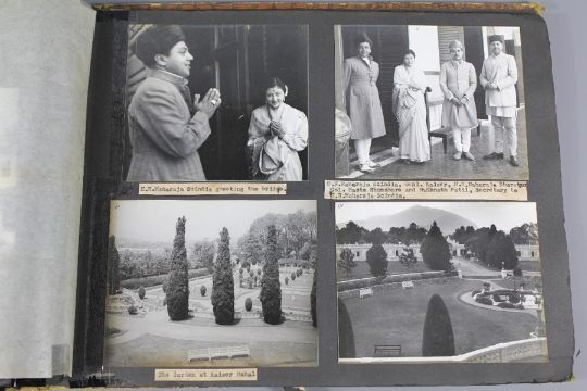 An Interesting Early 20th Century Photographic Album Prince of Gwaios. The album is understood to be photographs of the wedding between the Prince and Lekha Divyeshwari Devi who was descended from the powerful Rana dynasty of Nepal. The wedding was conducted on the 21 February 1941 in Singha Durbar (The Palace in Kathmandu) and depicts the groom, the bride, the grooms father Maharajah Scindia, Indian nobles and Indian and British dignitary as they progress through the course of the day. Approx 101 black and white photographs.