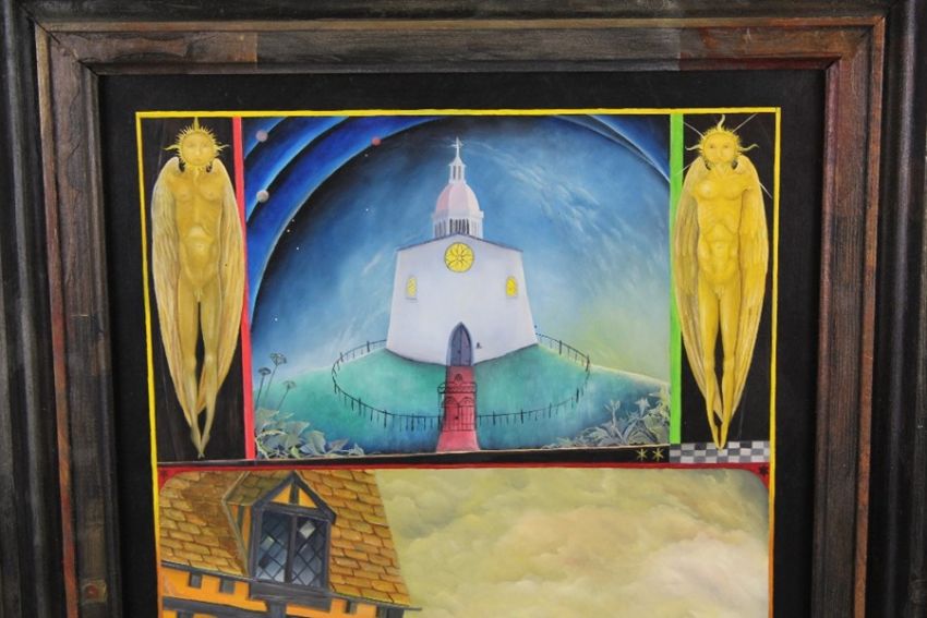 Sean Jefferson (British b.1957-Present) , Oil on Board, entitled "Fantastic Zoo" VI, signed lower left, in an interesting bespoke frame.