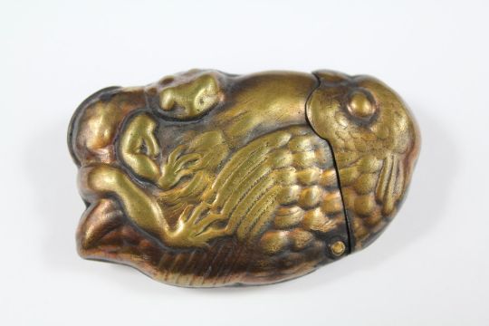 A Brass and Copper Vesta Case, modelled in the form of an owl clutching a toad, approx 6.5 cms.