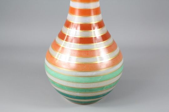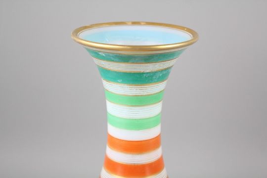 A Victorian Gilded Opaline Vase. The vase decorated with orange, green and blue concentric circles, approx 30 cms h.