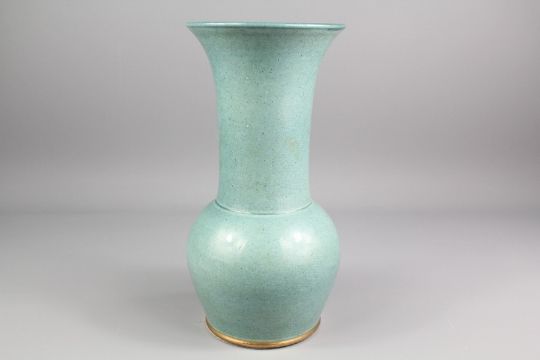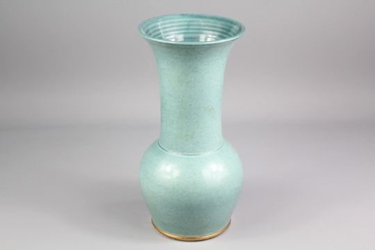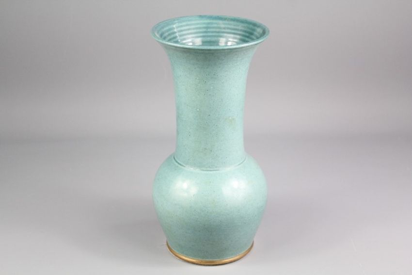 Tobias Harrison Studio Pottery Vase, green glaze, approx 28 cms h, incised marks to base.