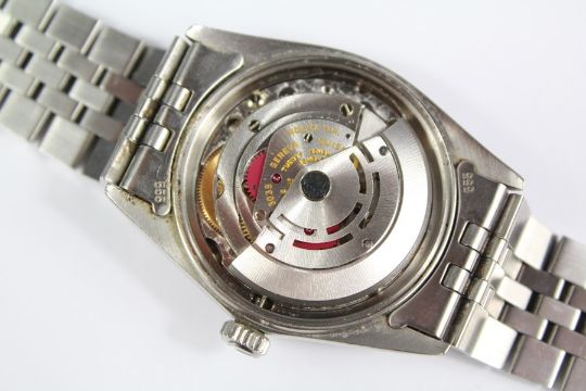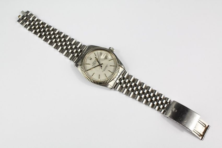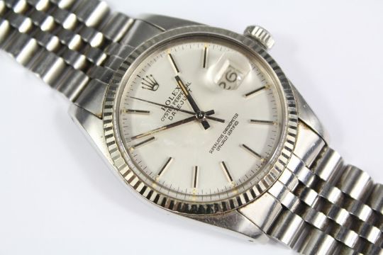 A Gentleman's Vintage Stainless Automatic Steel Rolex Oyster Wrist-watch; The watch having a champagne face with baton dial and date aperture, case nr 16000, movement nr 3035 with serial nr 0513048, on Rolex bracelet with concealed clasp, bracelet stamped 555 with Rolex emblem.