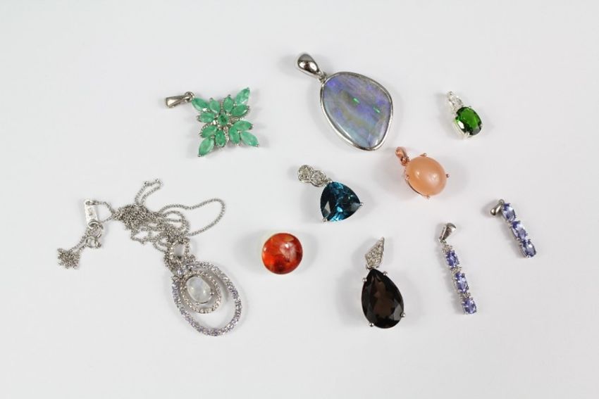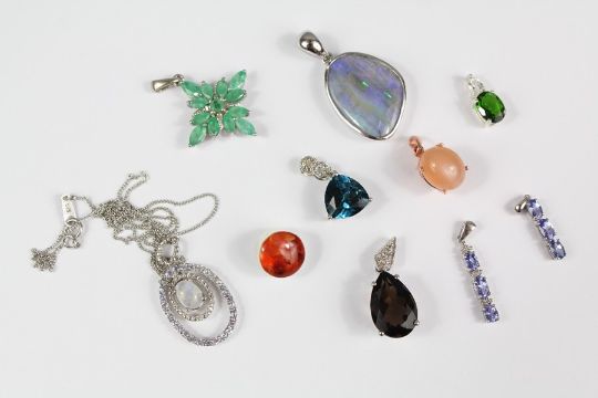 Miscellaneous Semi-Precious and Hardstone Pendants, set in silver mounts, approx 10.