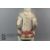 West African mask, wood carved fertility figure, white pigmentation, scarification marks to cheeks and ears, elongated crown, depicted seated on a birthing stool wearing a red loincloth, approx 61 cms h.