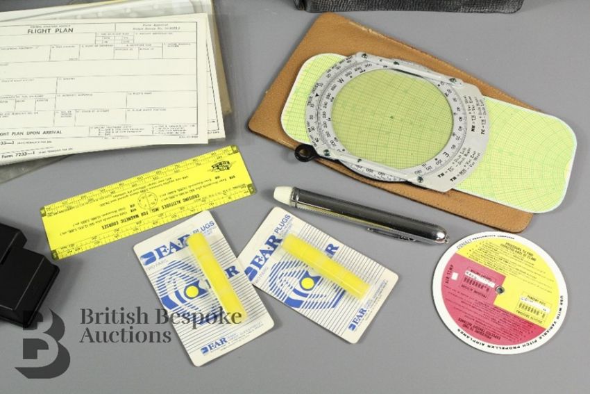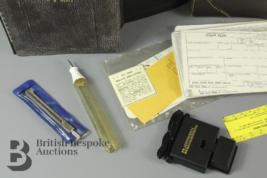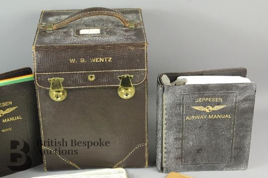 A vintage Jepco Case Model FC-3 Flight Case with contents. The case containing three leather Jeppesen Airway Manuals, aluminium G. Felsenthal and Sons Inc. Dead Reckoning Computer U.S order no. N383s-8682A U.S Property, Baron 285H.P Beechcraft computer, fuel strainer, vintage Eveready pencil torch, and Jeppesen Sanderson Beam N Read. All named W. B. Wentz, in excellent condition. Together with a black Courier carry case containing Bottlang airfield manual and a kneepad.