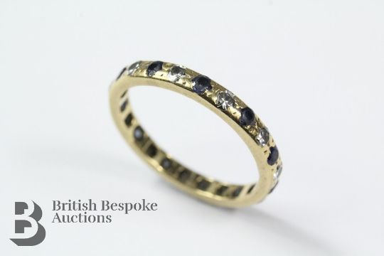 High carat yellow gold sapphire and diamond eternity ring, size N, approx 2.58 gms, diamonds colour G/H, clarity VS1.