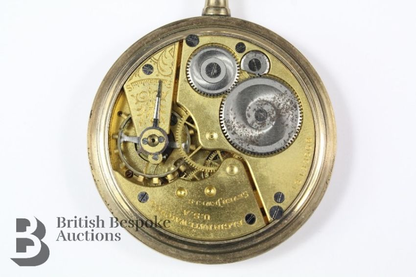 Elgin open faced gold plated self wind pocket watch, the watch having a white enamel face with numeric dial and subsidiary second dial, approx 40 mm, movement nr 18133568, watch in good overall condition some plate loss to back cover, face in good condition together with a lady's  Olympic Watch Co self wind pocket watch, the watch having a white and gilded enamel face approx 22mm with foliate engraved case.