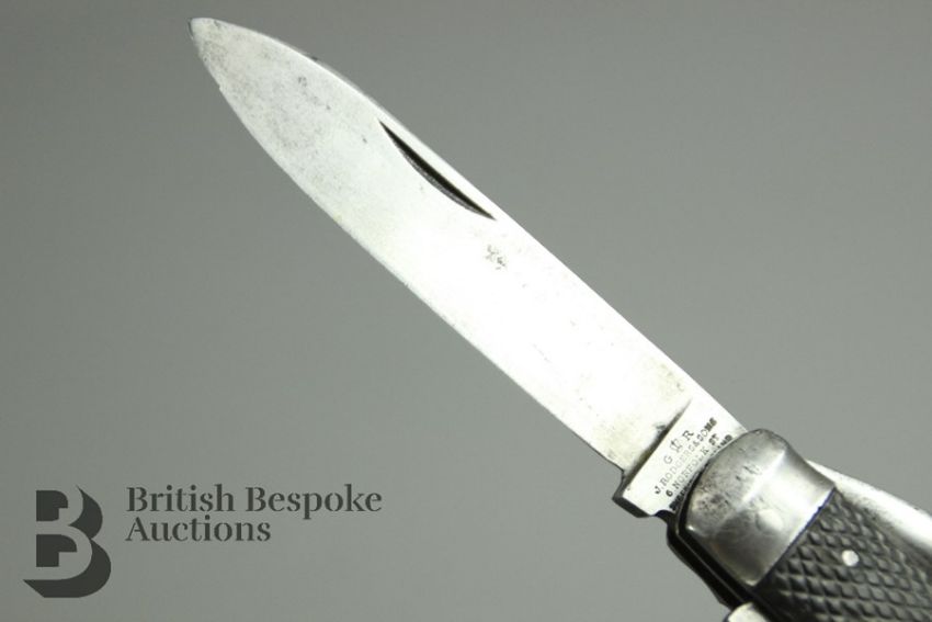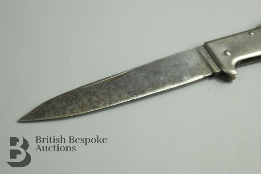 Two military issue folding clasp knives, including World War I/II Emperor Wilhelm knife, Mercator D.R.G.M 1867 design, 10cm blade length, with other WWII J.Rodgers and Sons British Army broad arrow 1938, 9.5cm blade length.