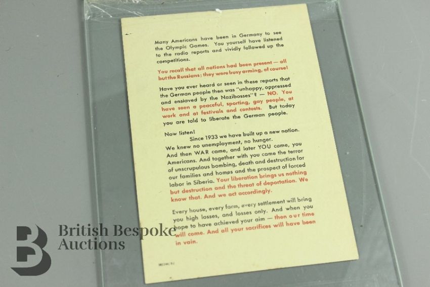WWII German propaganda leaflet, relating to the Olympic games in Berlin, approx 40.5 x 20 cms, framed.