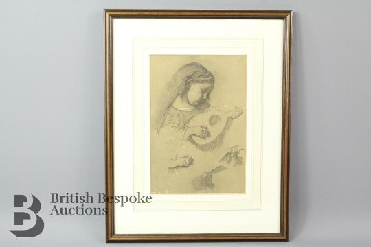 Anselm Feuerbach lithograph on toned paper, 'Girl playing the Lute' approx 15 w x 22 cms.