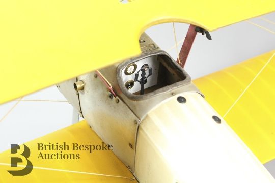 A large Sopwith Camel AP502 Biplane model aircraft manufactured by Authentic Models. The model is completed and fully assembled, made of silk and fabric, a lightweight wooden frame and a laminated wooden spinning propeller. The biplane measures 54cms in length with a 75cm wingspan and is in excellent condition.