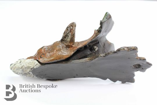 Unusual cold painted bronze letter clip, formed as a fox head, approx 145 x 65 mm.