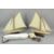 Two Authentic Models mini pond yachts AS057A, each with three cotton sails, wooden hull on wooden stands. The yachts measure 51cms in length, 42cm in boat length, and 50cm in height. Together with an Authentic Models Madeira Y6 AS140F Red unassembled boat with instructions.