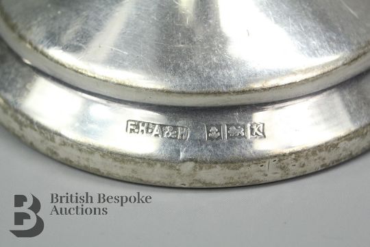 Pair of silver candlesticks, Birmingham hallmark dated 1959, approx 178 gms (weighted) approx 11 cms h, mm F.H.A & H. (good overall condition, pin dents to base of bottom rim on both candlesticks, see image)