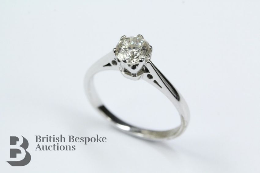 18ct white gold diamond ring, set with a single stone approx 65 pts, size K, approx 2.61 gms, colour H/I, SI1 clarity.